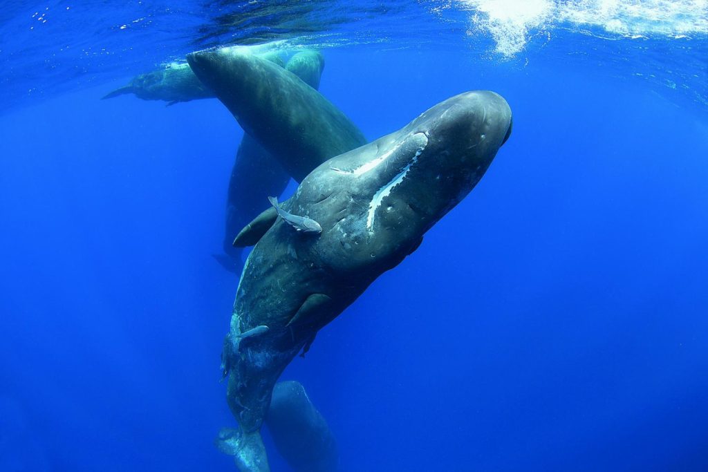 Η φάλαινα φυσητήρας (Physeter macrocephalus), με το πλατύ κεφάλι και το χαρακτηριστικό της τραγούδι, που ταξιδεύει σε τεράστιες αποστάσεις κάτω από το νερό, είναι ίσως η πιο εμβληματική παρουσία στις Αζόρες.