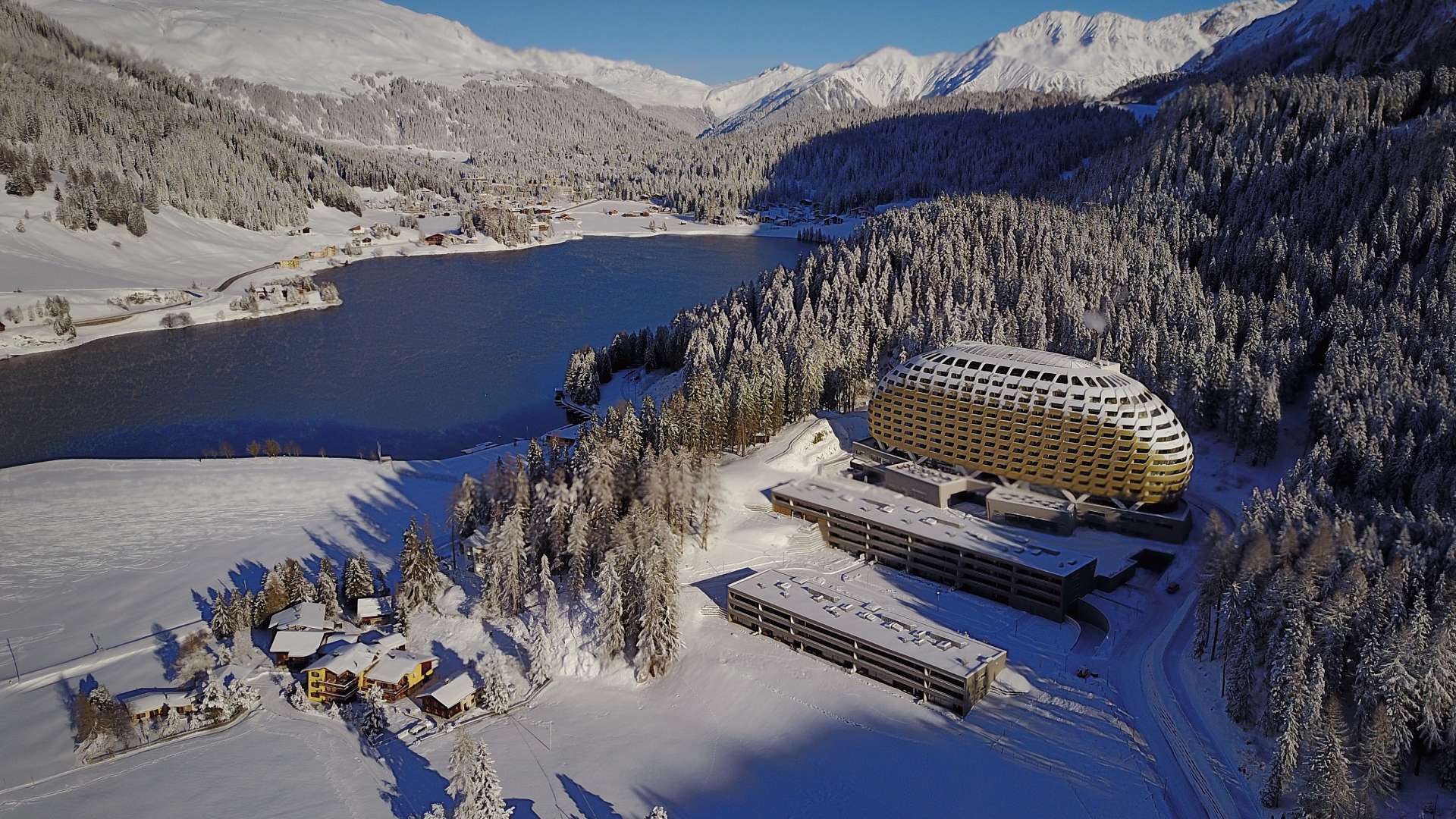 Αν πάλι κάποιος καταφθάσει αποφασισμένος να μην περάσει απαρατήρητος, τότε δεν υπάρχει άλλη επιλογή διαμονής από το AlpenGold Hotel, το περίφημο «Χρυσό Αβγό» της πόλης. Πρόκειται για ένα εντυπωσιακό αρχιτεκτόνημα, ένα τεράστιο, χρυσό μεταλλικό οβάλ σώμα, το οποίο κατοπτεύει όσα διαμείβονται στο Νταβός. Εκεί διαμένει συνήθως η αμερικανική αποστολή, η οποία εφέτος ήταν η μεγαλύτερη που έχει συμμετάσχει ποτέ στο φόρουμ.