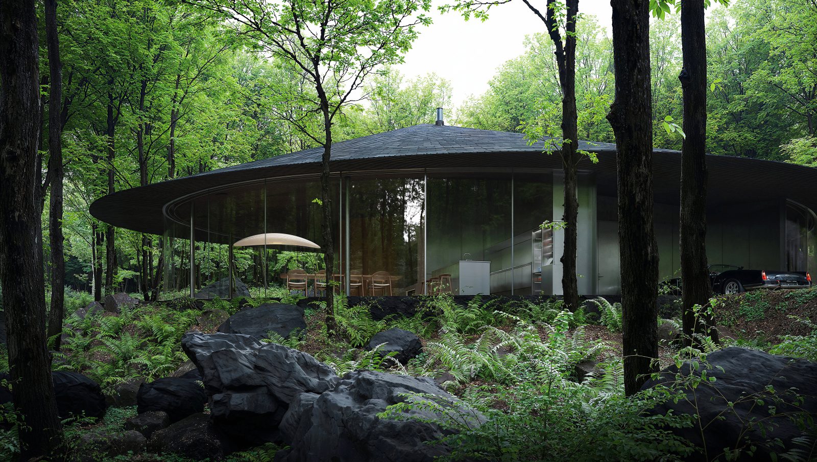 Η πρόταση του ιταλικού αρχιτεκτονικού στούντιο Unformed Design επαναπροσδιορίζει τη σχέση αρχιτεκτονικής και φυσικού περιβάλλοντος. Το οίκημα βρίσκεται στην ορεινή περιοχή Κιτακαρουιζάβα, στους πρόποδες του όρους Ασάμα (ενεργό ηφαίστειο στο νησί Χονσού). Στην ίδια περιοχή βρίσκεται και το διάσημο χειμερινό θέρετρο Asama Kuzanbo – ιδανικό για σκι και άλλες δραστηριότητες. Το σπίτι ακολουθεί τη φυσική κλίση του εδάφους δημιουργώντας αρμονική σύνδεση με το περιβάλλον. Η ελλειπτική οργανική φόρμα του κτίσματος δημιουργεί μια σχεδόν φυσική μετάβαση μεταξύ δομής και φύσης, καθώς οι βράχοι – κάθε λογής, μεγέθους και σχήματος – το αγκαλιάζουν παίζοντας πολλαπλούς ρόλους: προσφέρουν εντυπωσιακές θέες από το εσωτερικό, μειώνουν την ανάγκη για περισσότερα θεμέλια, διατηρούν τον αυθεντικό χαρακτήρα του τόπου.