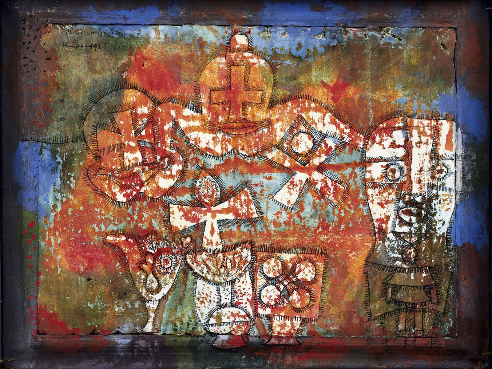 Ο Κλέε, πιο ήπιος αλλά εξίσου διεισδυτικός, ακολουθεί μια διαφορετική πορεία. Αντί να διαλύει τις μορφές, τις μεταμορφώνει σε σύμβολα. Επηρεασμένος από τη λαϊκή τέχνη, τις μαριονέτες και τις μάσκες του Εθνογραφικού Μουσείου του Μονάχου (νυν Μουσείου Πέντε Ηπείρων), δημιουργεί πρόσωπα που μοιάζουν περισσότερο με ψυχικά τοπία παρά με απεικονίσεις ανθρώπων.