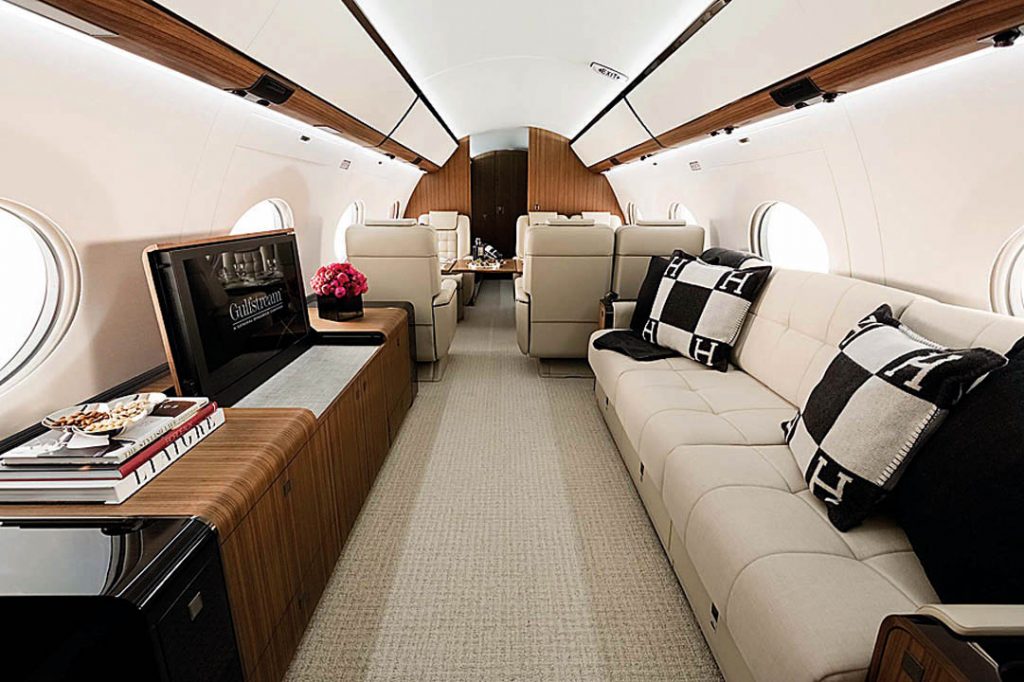 Άποψη του εσωτερικού του τζετ Gulfstream G650. Η εταιρεία Flexjet τιμολογεί τις 100 ώρες πτήσης ετησίως με 1,5 εκατομμύρια δολάρια.
