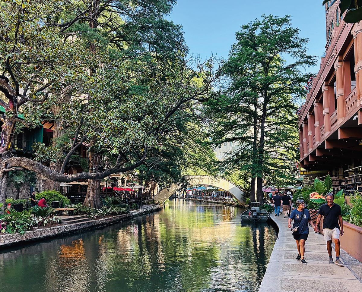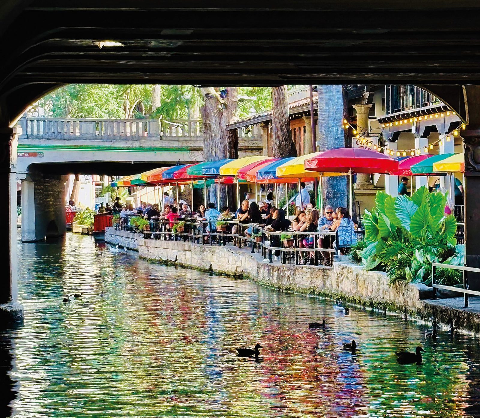 Συνεχίζω κατά μήκος του River Walk, της υδάτινης αρτηρίας που δίνει δροσιά στην πόλη. Η διαδρομή ξετυλίγεται σε δύο επίπεδα: επάνω, η βουή της Commerce και της Houston Street, των πολυσύχναστων δρόμων της πόλης. Κάτω, δίπλα στην κοίτη του ποταμού Σαν Αντόνιο, ένας κεφάτος κόσμος με πετροστρωμένα μονοπάτια, μικρές γέφυρες, ανθισμένες βουκαμβίλιες και jazz μπάντες που παίζουν στα δεκάδες εστιατόρια και μπαρ, γεμίζοντας τον αέρα με ρυθμό. Παντού γύρω μου η αισθητική του Tex-Mex: πικάντικα αρώματα από τα τοπικά μαγειριά (τις taquerías), τοιχογραφίες με σκηνές της μεθοριακής ζωής, παγκάκια από πλακάκια Ταλαβέρα.