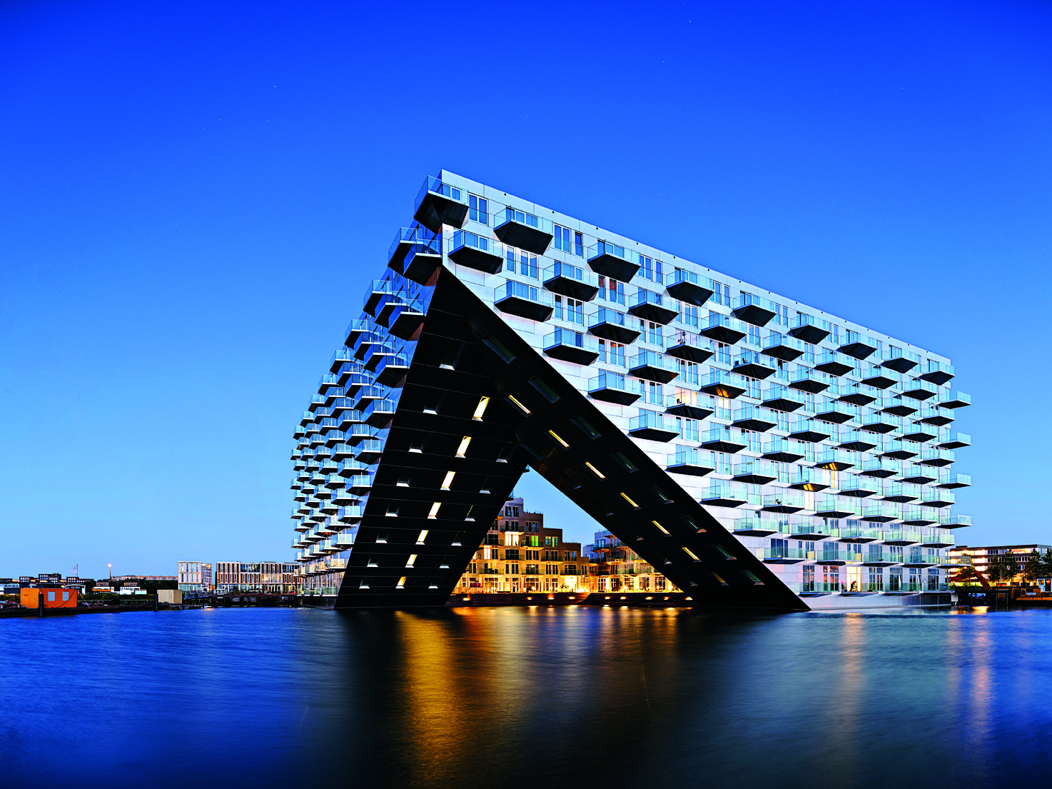 Εχει σχεδιαστεί από τον σταρ της αρχιτεκτονικής Μπιάρκε Ινγκελς του Bjarke Ingels Group (BIG), γνωστού για τη δημιουργία του «πιο πράσινου κτιρίου στον κόσμο», ενός ηλεκτροπαραγωγικού σταθμού στην Κοπεγχάγη με πίστα σκι στην οροφή του και επιφάνεια αναρρίχησης στην πρόσοψή του. Στην περίπτωση του Sluishuis, όπως λέγεται το νέο αυτό κτίριο, το BIG (με έδρες από την Κοπεγχάγη, γενέτειρα του Ινγκελς, ως τη Νέα Υόρκη, το Λονδίνο, τη Βαρκελώνη και τη Σεντσέν της Κίνας) συνεργάστηκε με τους Barcode Architects από την Ολλανδία έχοντας κατά νου να δημιουργήσουν μια «τυπική γειτονιά του Αμστερνταμ». O στόχος είναι να αποτελέσει ένα σύγχρονο παράδειγμα για την κατεύθυνση και τη μορφή που μπορεί να πάρει η οικιστική αρχιτεκτονική στην πόλη των περίπου 800.000 κατοίκων, στην οποία σημειωτέον κατοικούν περισσότερες εθνικότητες στον κόσμο (περί τις 185). Οπου με τον όρο «σύγχρονο παράδειγμα» νοείται η κατασκευαστική δραστηριότητα πάνω στη συνοριακή λίμνη IJmeer, όπου τα τελευταία χρόνια δημιουργούνται τεχνητά νησιά και ανεγείρονται κτίρια στο προάστιο IJburg, το οποίο είναι επί της ουσίας η επέκταση του Αμστερνταμ, για να αντιμετωπιστεί η οικιστική κρίση που πλήττει την πόλη αλλά και τη χώρα. Κοινώς δεν υπάρχουν πολλά διαθέσιμα σπίτια για να καλύψουν τις ανάγκες του ολοένα αυξανόμενου πληθυσμού σε μια χώρα με συνολική έκταση 41.543 km². H έλλειψη στέγης στην Ολλανδία είναι μεγαλύτερη απ’ ό,τι είχε εκτιμηθεί και το πρόβλημα θα συνεχίσει να μεγαλώνει στα χρόνια που έρχονται.