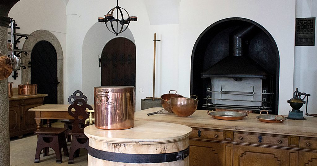 Λεπτομέρεια από τους χώρους της άνετης και λιτής κουζίνας του κάστρου.