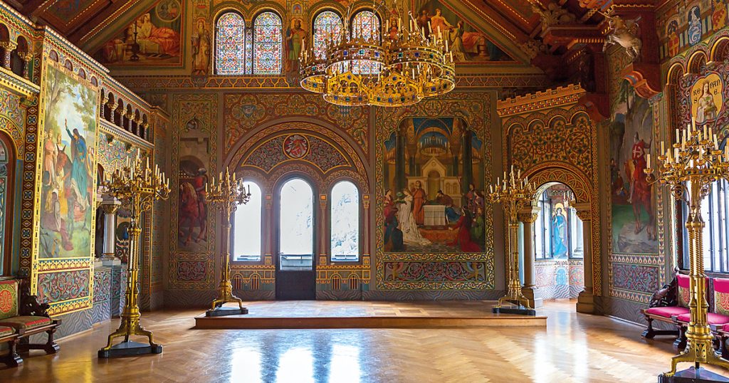 Πολυτέλεια και πλούτος και στο εσωτερικό του Κάστρου Νοϊσβανστάιν, στους διαδρόμους και τα δεκάδες σαλόνια και υπνοδωμάτιά του.