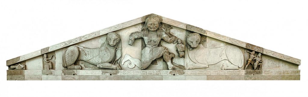Την εικόνα της αρχαίας Κέρκυρας ανασυνθέτουν τα σπουδαία μνημεία που έχει φέρει στο φως η αρχαιολογική σκαπάνη, όπως, μεταξύ άλλων, ο δωρικός ναός του Καρδακίου στο Mon Repos, το αρχαϊκό κενοτάφιο του Μενεκράτη με τον επιβλητικό λέοντα και, το σημαντικότερο όλων, το δυτικό αέτωμα του ναού της Αρτέμιδας, με τη μορφή της φτερωτής Γοργούς, «ένα μοναδικό έργο της πρώιμης αρχαϊκής εποχής», όπως υπογραμμίζει η συγγραφέας του τόμου.