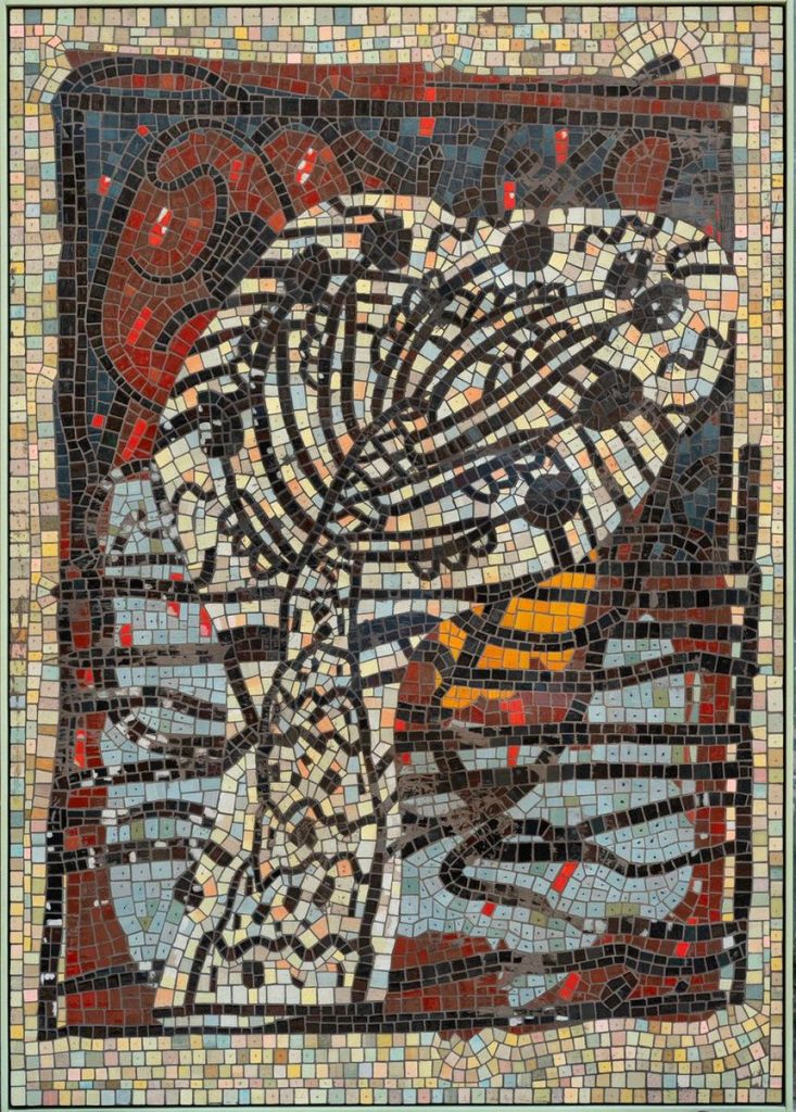 Τα ψηφιδωτά εκφράζουν βάθος χρόνου και θέτουν ερωτήσεις γύρω από το θέμα του «σύγχρονου» στην τέχνη μέσα από τη χρήση “ασύγχρονων” τεχνικών, όπως το θάψιμο και έπειτα η ανάσυρση των έργων, η παλαίωση των χρωμάτων με τη χρήση καφέ και χώματος, αλλά και με τη χρήση όγκων που προκαλούν ένα είδος γεωλογικής αστάθειας. Iσως αυτά τα έργα έχουν έρθει γερασμένα από το μέλλον ή ίσως είναι “αρχαιολογικά ευρήματα”.