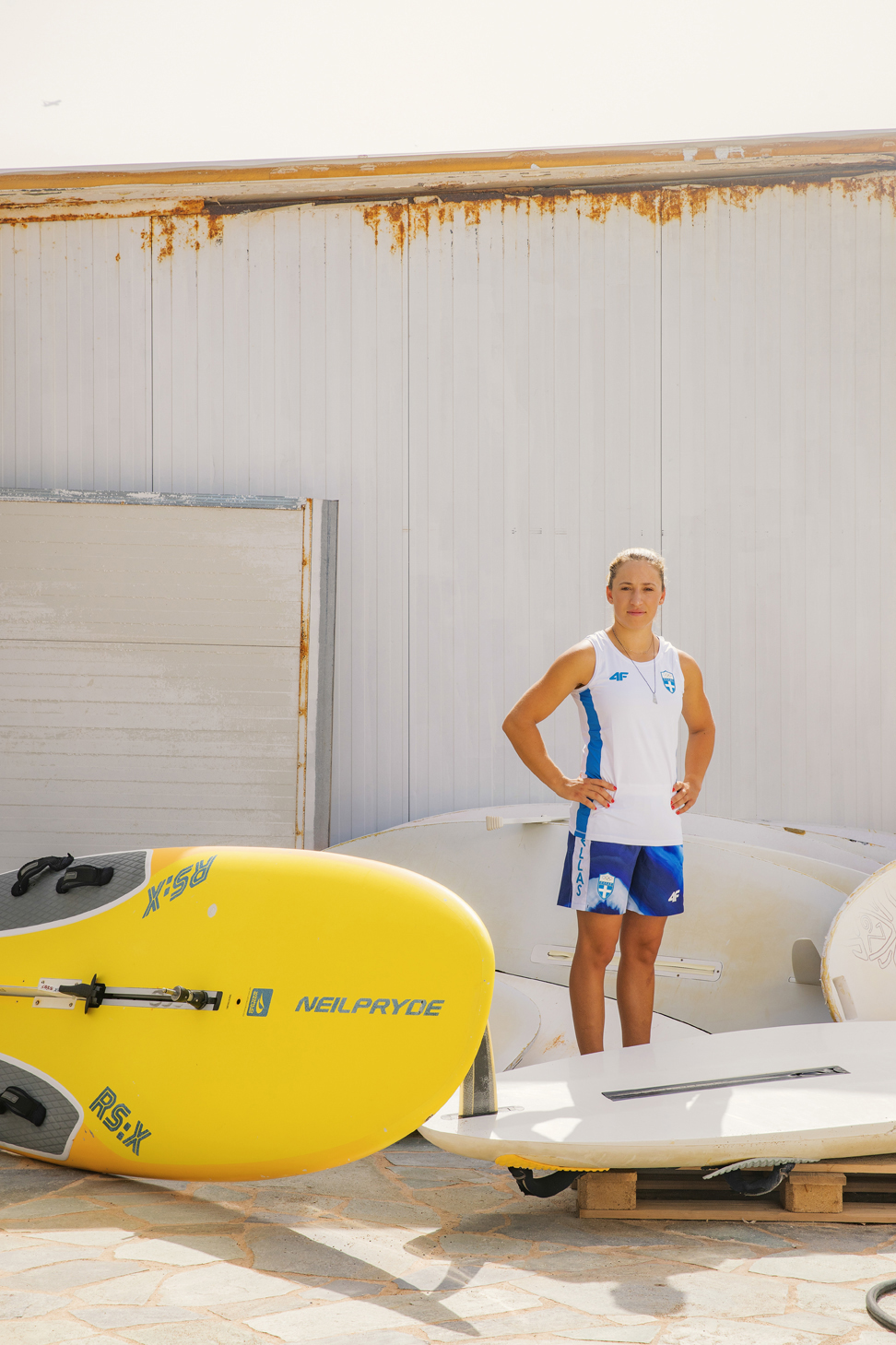 Το χαμόγελο λάμπει στο πρόσωπό της όταν τη συναντούμε στην παραλία της Βάρκιζας. Η 21χρονη Κατερίνα Δίβαρη στην τελευταία παρουσία της κλάσης RSX στους Ολυμπιακούς Αγώνες θα πραγματοποιήσει την πρώτη της εμφάνιση σε Ολυμπιακούς Αγώνες, κάνοντας ουσιαστικά το παιδικό της όνειρο πραγματικότητα. «Ανέβηκα πρώτη φορά στη σανίδα στην ηλικία των εννέα ετών ένα καλοκαίρι» θυμάται. «Ο πατέρας μου ήθελε να κάνει κάποια μαθήματα windsurf και έτσι βρεθήκαμε λίγα μέτρα μακριά από το σπίτι – μένουμε στη Βάρκιζα – στο πιο κοντινό club, στη σχολή του Παύλου Χειλαδάκη». Και όπως ομολογεί, η παρθενική επαφή της με το windsurf ήταν έρωτας με την πρώτη ματιά: «Εγώ, ένα μικρό παιδάκι, ξαφνικά μπορούσα να χειριστώ έναν εξοπλισμό στη θάλασσα, τη μεγάλη και απέραντη. Ηταν σαν να είχα δίπλωμα αυτοκινήτου για να ταξιδεύω πάνω στα κύματα».