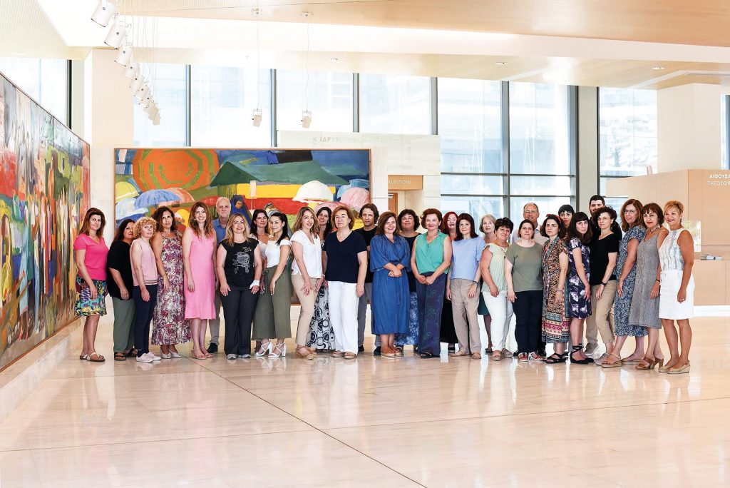 «Μετά από τόσα χρόνια που δουλεύω σε μουσεία δεν το πιστεύω πια αυτό, ότι δηλαδή μια διευθύντρια πρέπει να κάνει αμιγές καλλιτεχνικό έργο. Πρέπει να έχεις εικόνα σε βάθος, να ξέρεις τι είναι ένα ίδρυμα σε όλα τα επίπεδα, πώς κατανέμεται ο προϋπολογισμός, με ποιες διαδικασίες εξασφαλίζεις τις υπηρεσίες που θέλεις, πώς συμπεριφέρεσαι και πώς διαχειρίζεσαι τους εργαζομένους κ.ο.κ. Δεν εννοώ ότι ένας άνθρωπος πρέπει να τα κάνει όλα, εννοείται ότι είναι ομαδική δουλειά και ο καθένας έχει τον τομέα της ευθύνης του, αλλά κατά τη γνώμη μου η διευθύντρια πρέπει να έχει την εικόνα του συνόλου και την επίβλεψη για να κάνει σωστά τη δουλειά της. Οταν ήρθα στην Πινακοθήκη υπήρχε μόνο διευθύντρια συλλογών και μουσειακού σχεδιασμού, η συνάδελφος Εφη Αγαθονίκου. Οι άλλες δύο θέσεις προϊσταμένων, η Διεύθυνση Διοικητικού-Οικονομικού και εκείνη της Συντήρησης Εργων Τέχνης, ήταν ακέφαλες και αυτό για μένα ήταν ένα τεράστιο πρόβλημα. Μέσα σε λίγους μήνες κάλεσα τους ενδιαφερόμενους να υποβάλουν υποψηφιότητα, αξιολογήσαμε τους φακέλους μαζί με το διοικητικό συμβούλιο, εισηγήθηκα τις προτάσεις μου, έγιναν δεκτές και αποκτήσαμε προϊστάμενες διεύθυνσης την Κατερίνα Αρβανιτάκη στο Διοικητικό-Οικονομικό και την Αγνή Τερλιξή στη Συντήρηση. Σε κάθε θέση πρέπει να υπάρχει ο κατάλληλος άνθρωπος που θα κάνει τις εισηγήσεις, τη δουλειά του και να συντονιζόμαστε όλοι μαζί. Τη στοχοθεσία τη βάζει αναγκαστικά ο διευθυντής».