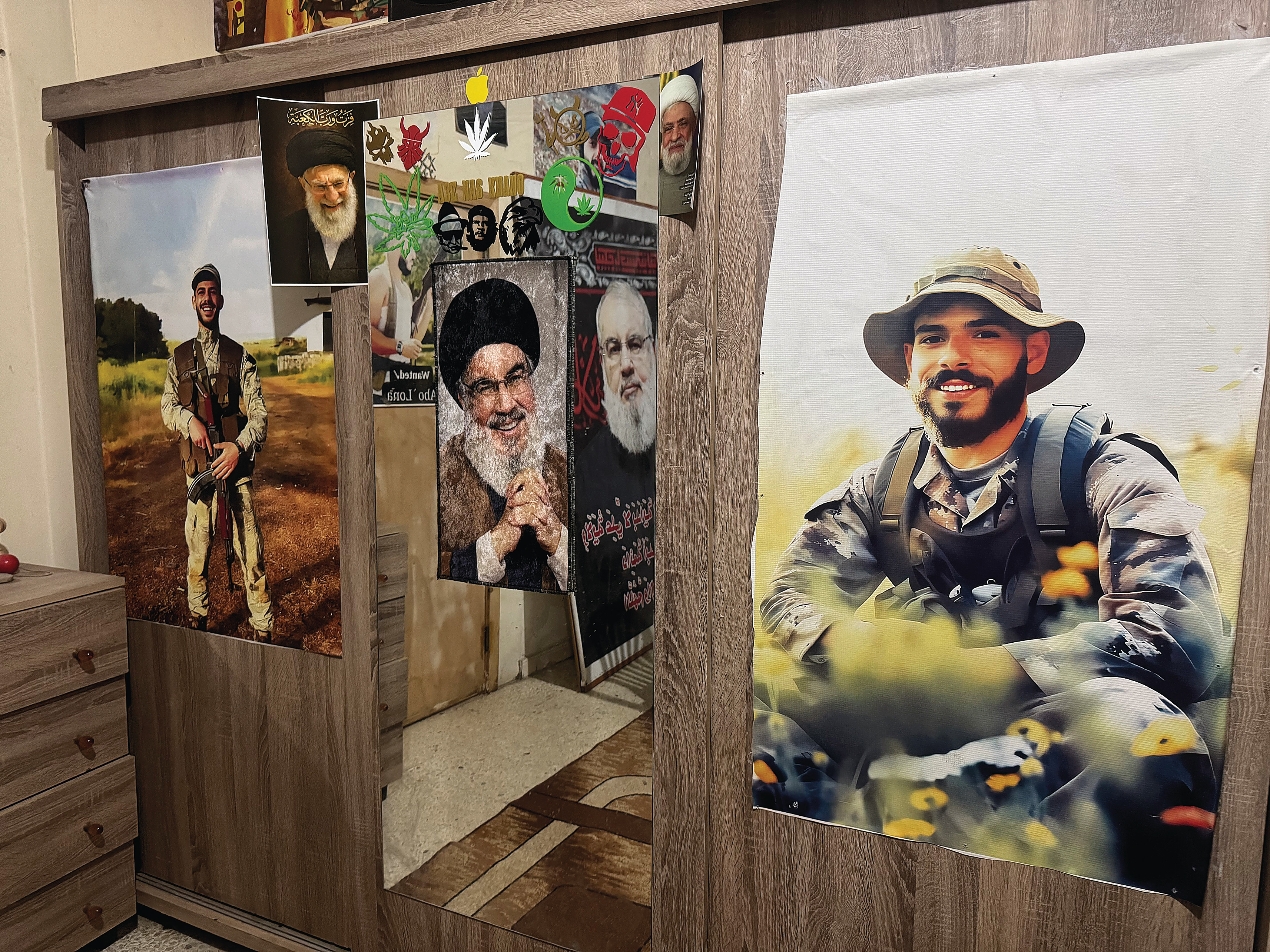 Το σώμα του είναι γεμάτο τατουάζ: ο Χομεϊνί, ο εμπνευστής της ιρανικής επανάστασης του 1979, ο Αλί Χαμενεΐ, ο ανώτατος ηγέτης του Ιράν που δολοφονήθηκε εφέτος, την πρώτη ημέρα του πολέμου, ο Χασάν Νασράλα, το σύμβολο της αντίστασης απέναντι στο Ισραήλ και τη Δύση για τους υποστηρικτές της Χεζμπολάχ, ο Αμπάς αλ Μουσουάι, ο δεύτερος γενικός γραμματέας της οργάνωσης, ο οποίος δολοφονήθηκε από τους Ισραηλινούς το 1992, τα μάτια του Ναΐμ Κασέμ, του σιίτη κληρικού που εξελέγη γενικός γραμματέας της οργάνωσης τον Οκτώβριο του 2024, αμέσως μετά τη δολοφονία του Χασάν Νασράλα, το έμβλημά της, ένα υψωμένο χέρι που κρατά ένα αυτόματο όπλο και γράφει στα αραβικά «Χεζμπολάχ», δηλαδή «Κόμμα του Θεού».