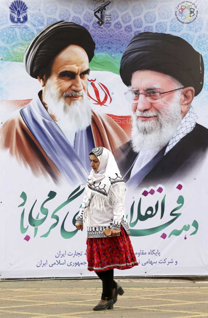 Οι μορφές του Αγιατολάχ Ρουχολάκ Χομεϊνί και του Αγιατολάχ Αλί Χαμενεΐ δεσπόζουν στους δρόμους της Τεχεράνης.