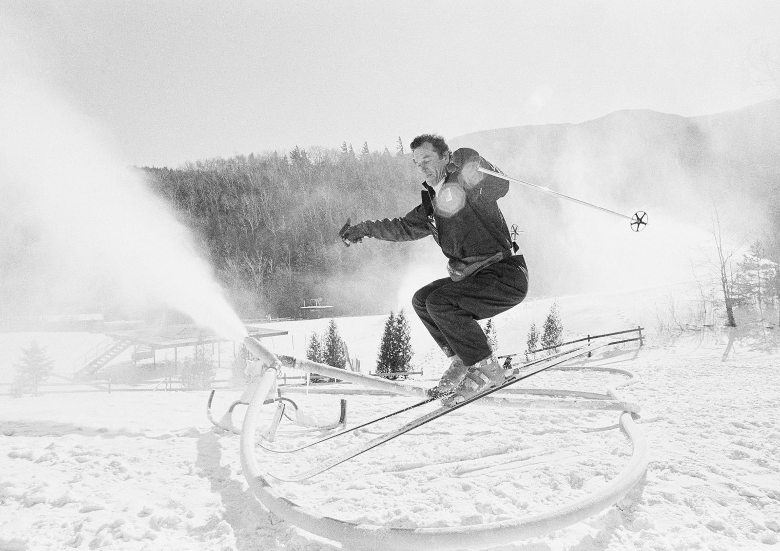 Ωστόσο, η μετάβαση από το εργαστήριο στη βιομηχανία ήρθε λίγα χρόνια αργότερα. Το 1950 οι Αρτ Χαντ, Ντέιβ Ρίτσι και Γουέιν Πιρς κατασκεύασαν την πρώτη λειτουργική μηχανή τεχνητού χιονιού στο Κονέκτικατ των ΗΠΑ χρησιμοποιώντας μια αντλία κήπου, έναν συμπιεστή αέρα και διάφορους σωλήνες. Στόχος τους δεν ήταν η επιστημονική έρευνα, αλλά κάτι πολύ πιο πρακτικό: η παράταση της χειμερινής σεζόν στο χιονοδρομικό κέντρο Mohawk Mountain Ski Area. Ετσι γεννήθηκε η πρώτη εμπορική εφαρμογή της τεχνητής χιονόπτωσης. Μια λύση που έμελλε να εξελιχθεί σε παγκόσμια βιομηχανία, μετατρέποντας σταδιακά το χιόνι από φυσικό φαινόμενο σε παραγόμενο προϊόν.