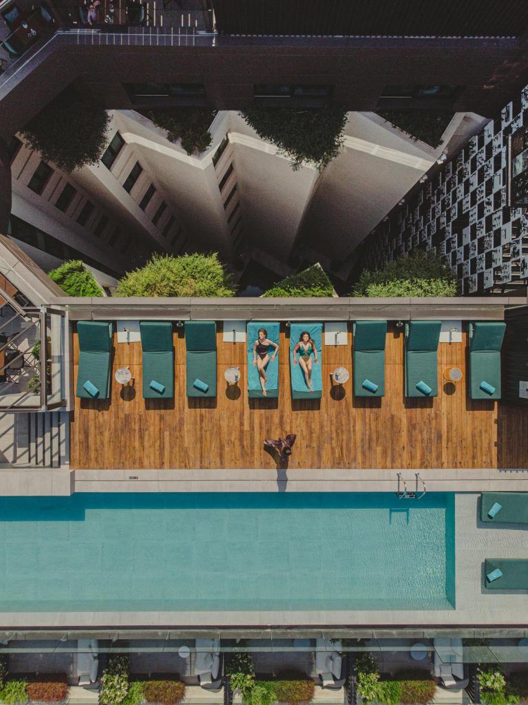 Εντυπωσιακή εναέρια λήψη του rooftop στο Athens Capital Hotel – MGallery Collection.