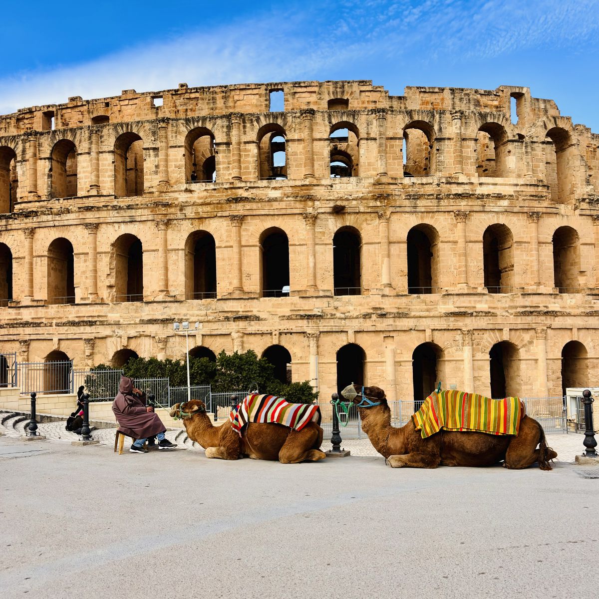 Στην Ελ Τζεμ η αρένα θεωρείται ένα από τα καλύτερα σωζόμενα ρωμαϊκά αμφιθέατρα στον κόσμο. Χτισμένη τον 3ο αιώνα μ.Χ., εντυπωσιάζει ακόμα με την πληθωρική έκτασή της και με τις τεράστιες καμάρες της. Οχι πολύ μακριά βρίσκεται ο αρχαιολογικός χώρος και το μουσείο της πόλης στο οποίο (σαν σε παράρτημα του Μπαρντό) φυλάσσονται εξαιρετικά μωσαϊκά.