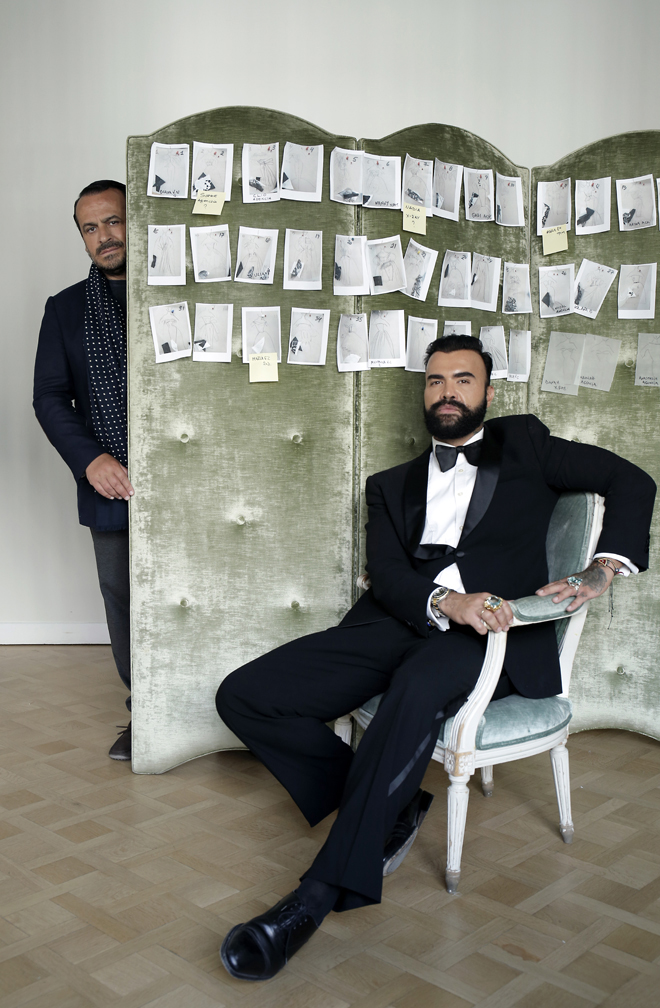 Χτυπάμε το κουδούνι και μας υποδέχεται στην πόρτα η Μυρτώ. Μια ψηλόλιγνη νεαρή γυναίκα με λεπτεπίλεπτα χαρακτηριστικά, η οποία φοράει μια εντυπωσιακή στενή μαύρη τουαλέτα που ανοίγει χαμηλά στα πόδια. Περνώντας μέσα, μπροστά στον καθρέφτη, μια άλλη, ανάλογων χαρακτηριστικών καλλονή, επίσης με μαύρο βραδινό φόρεμα, στέκεται με υπομονή καθώς ο Βασίλης Ζούλιας προσαρμόζει κάποιες λεπτομέρειες στην εμφάνισή της, συζητώντας τες παράλληλα με τον Περικλή Κονδυλάτο, ο οποίος έχει φτιάξει τα κοσμήματα. Αν και πρωί στο κέντρο της Αθήνας, στον χώρο επικρατεί ησυχία, γαλήνη και ηρεμία. Καμία σχέση με αυτό που περίμενα ότι θα αντίκριζα σε ένα ατελιέ μόδας λίγο πριν από το μεγάλο show.