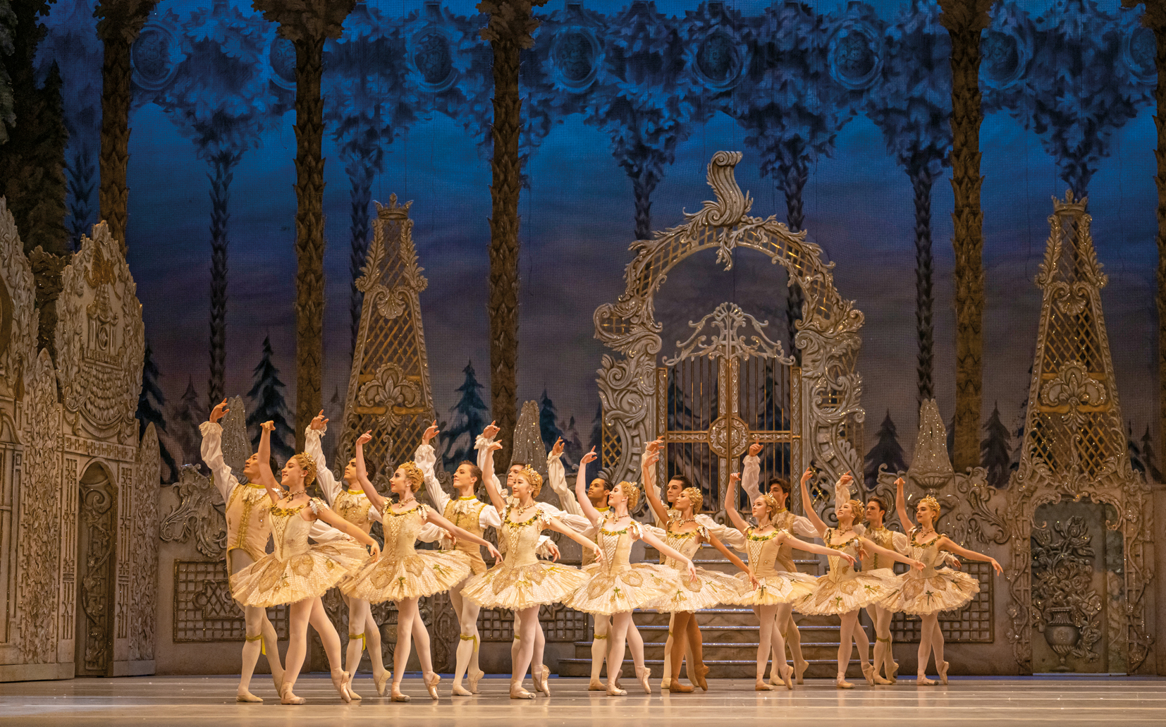 Το corps de ballet σε σκηνή από τη μεγαλειώδη παραγωγή του «Καρυοθραύστη» που παρουσιάζει η Βασιλική Όπερα του Λονδίνου.
