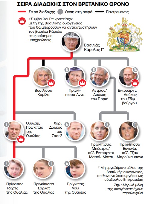 Στην περίπτωση της μόνιμης ανικανότητας του μονάρχη να ασκήσει καθήκοντα, ορίζεται αντιβασιλέας ο διάδοχος Ουίλιαμ ως ο επόμενος ενήλικος στη σειρά διαδοχής. Ο αντιβασιλέας μπορεί να κάνει σχεδόν οτιδήποτε κάνει ο βασιλιάς, εκτός από τη χορήγηση συγκατάθεσης στη νομοθεσία που αλλάζει τη γραμμή διαδοχής. Από την εν λόγω διαδικασία, αποκλείονται ο μικρότερος γιος του Καρόλου, πρίγκιπας Χάρι, και ο έτερος αδελφός του πρίγκιπας Αντριου καθώς δεν είναι πλέον εργαζόμενα μέλη της βασιλικής οικογένειας. Παρ’ όλα αυτά, για τον Χάρι εκφράζεται το ερώτημα αν μπορεί να ενεργοποιηθεί και πάλι ο βασιλικός του ρόλος, μετά και τα δύο σοβαρά περιστατικά υγείας στη βασιλική οικογένεια.