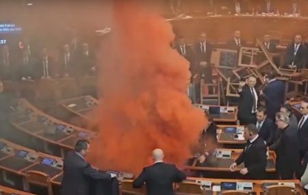 Ένταση με φωτοβολίδες, ξύλο και παρέμβαση της αστυνομίας σημειώθηκε με βουλευτές εντός του αλβανικού κοινοβουλίου έπειτα από εβδομάδες έντασης για καταγγελίες για διαφθορά εναντίον συνεργατών του Έντι Ράμα