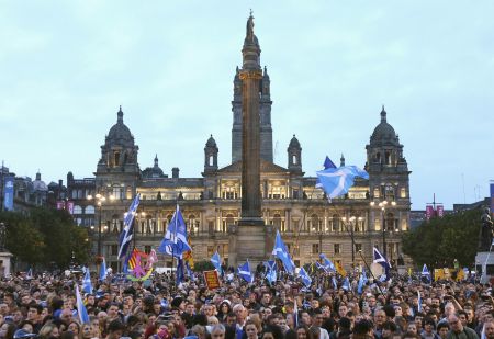 Νέα διαδήλωση υπέρ της ανεξαρτησίας της Σκωτίας πραγματοποιήθηκε σήμερα στη Γλασκώβη.