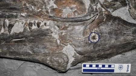 Το απολίθωμα χρονολογείται στα 74 εκατομμύρια χρόνια πριν, όταν οι ωκεανοί της Κρητιδικής περιόδου μαστίζονταν από γιγάντια ερπετά που ονομάστηκαν μοσάσαυροι. Όπως φαίνεται, τα σαρκοφάγα αυτά τέρατα δεν ήταν πάντα ευγενικά το ένα με το άλλο.