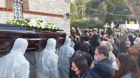 Στην εκκλησία έφτασε και η σύζυγός του, η οποία είχε νοσήσει επίσης από κοροναϊό
