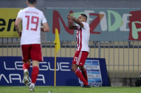 Ο Μαντί Καμαρά ισοφάρισε με προβολή στο δεύτερο δοκάρι για τον Ολυμπιακό, στο 49ο λεπτό του αγώνα με τον Ατρόμητο στο Περιστέρι