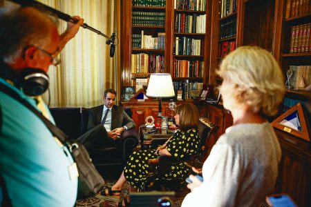 Ο πρωθυπουργός απαντά σε ερωτήσεις πολιτικών συντακτών στην 89η ΔΕΘ