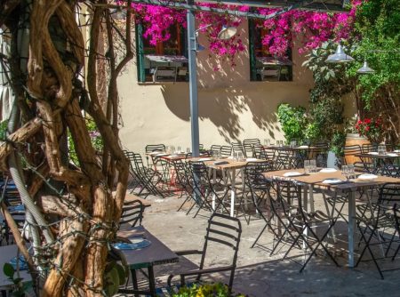 Μέσα στο κέντρο της Αθήνας -ή και λίγο παραέξω- κρύβονται υπέροχες, καταπράσινες αυλές στις οποίες μπορούμε να απολαύσουμε το φαγητό μας... σαν να είμαστε ήδη διακοπές.