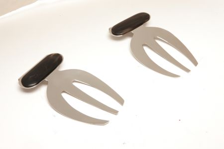 Ανοξείδωτες πιρούνες σερβιρίσµατος, µε λαβές από φυσικό κόκαλο που στερεώνονται στο σκεύος και δεν γλιστράνε, €48. {{{ moto }}} *Δημοσιεύθηκε στο BΗΜΑ GOURMET την Κυριακή 8 Δεκεμβρίου 2013.