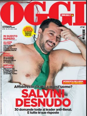Έναν διαφορετικό τρόπο επέλεξε ο νέος ηγέτης της Λέγκας του Βορρά, Ματέο Σαλβίνι, για να τραβήξει το ενδιαφέρον και την ψήφο των Ιταλών. Φωτογραφήθηκε ημίγυμνος για το εξώφυλλο γνωστού περιοδικού. Στο στόχαστρό του, όπως και άλλων στην Ευρώπη, το κοινό νόμισμα, οι μετανάστες, η σφιχτή οικονομική πολιτική.