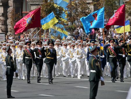 Με στρατιωτικές παρελάσεις, για πρώτη φορά εδώ και μερικά χρόνια, τιμά το Κίεβο την εθνική γιορτή της Ουκρανίας παρά τις συνεχιζόμενες συγκρούσεις σε Ντονέτσκ και Λουχάνσκ με τους φιλορώσους ενόπλους. «Δυστυχώς, στο ορατό μέλλον θα επικρεμάται πάνω μας συνεχής πολεμική απειλή» λέει ο Ποροσένκο, ανακοινώνοντας πως θα ξοδέψει άλλα 3 δισ. δολάρια σε εξοπλισμούς.