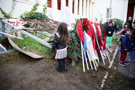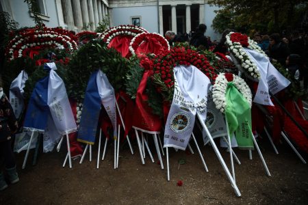 Με ένα στεφάνι και πλαισιωμένος από αγωνιστές που βασανίστηκαν και φυλακίστηκαν από το καθεστώς των συνταγματαρχών, ο Στέφανος Κασσελάκης τίμησε το Πολυτεχνείο