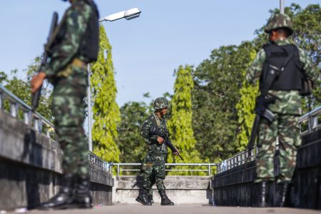 Την επιβολή στρατιωτικού νόμου για την τήρηση της τάξης ανακοίνωσαν οι Ένοπλες Δυνάμεις της Ταϊλάνδης. Ο στρατιωτικός νόμος δίνει στον στρατό τον πλήρη έλεγχο για την αποκατάσταση της ειρήνης και της τάξης, κάτι για το οποίο υπεύθυνη ήταν η κυβέρνηση και η αστυνομία.