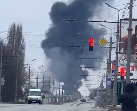 Από την επίθεση στη συνοικία Σάλτιβκα, ξέσπασε πυρκαγιά σε μια πολυκατοικία.