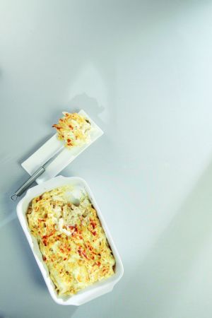 ΥΛΙΚΑ (για 4-6 άτομα) 500 γρ. πένες 2 κ.σ. έ.π. ελαιόλαδο + λίγο επιπλέον για την επάλειψη του σκεύους 125 γρ. βούτυρο 1 κρεμμύδι, ψιλοκομμένο 1 σκελίδα σκόρδο, τριμμένη 100 γρ. αλεύρι για όλες τις χρήσεις 500 ml φρέσκο γάλα, ζεστό αλάτι, πιπέρι 2 κ.γ. μοσχοκάρυδο 4 αβγά, ξεχωριστά τους κρόκους από τα ασπράδια 150 […]
