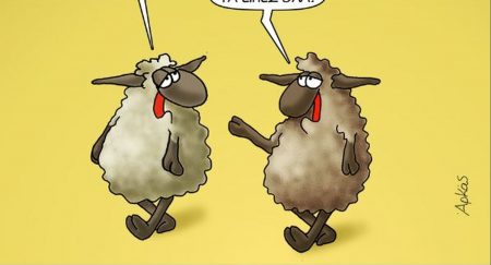 Αιχμηρή είναι η «Καλημέρα« που μας λέει ο Αρκάς με ένα σκίτσο για τους λύκους και τα πρόβατα.