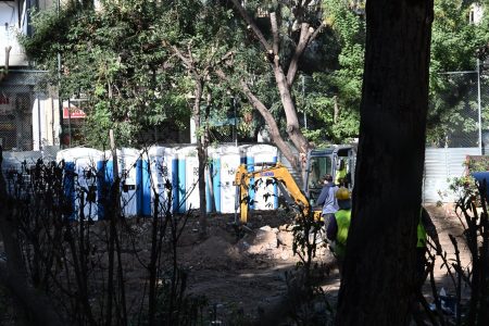 Ένταση επικρατεί κάθε ημέρα στην πλατεία Εξαρχείων, καθώς τα συνεργεία συνεχίζουν τις κοπές των δέντρων για να προχωρήσουν τα έργα για τον σταθμό του μετρό.