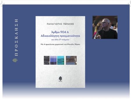 Παρουσιάζεται η ποιητική συλλογή του δικηγόρου Παναγιώτη Περάκη από την Αλυσίδα Πολιτισμού ΙΑΝΟΣ και τις εκδόσεις Κέδρος - Προλογίζουν οι Ευάγγελος Βενιζέλος, Απόστολος Δοξιάδης, Παναγιώτης Ρίζος, Κατερίνα Παπαντωνίου και Δημήτρης Ορφανίδης.