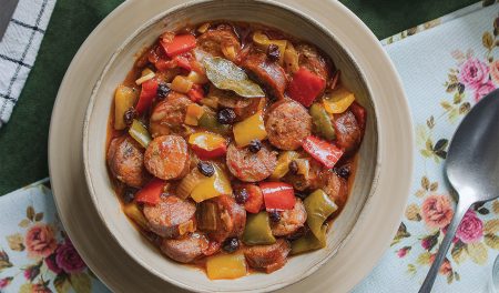 Μια Εβρίτικη συνταγη με λαχταριστά λουκάνικα, ιδανική για το τραπέζι της Τσικνοπέμπτης - και όχι μόνο.