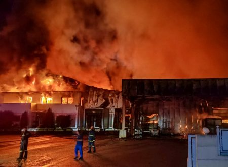 Το εργοστάσιο τυλίχθηκε στις φλόγες λίγες ώρες μετά την αποκάλυψη πως τα σχολικά γεύματα που παρασκεύαζε έστειλαν στο νοσοκομείο μαθητές.
