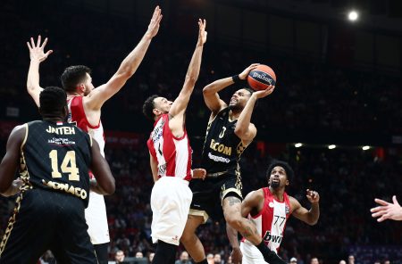 Οι «ερυθρόλευκοι» ηττήθηκαν 77-80 από την Μονακό του Βασίλη Σπανούλη, για την 32η αγωνιστική της Euroleague και υπέστησαν έτσι την τρίτη διαδοχική ήττα.