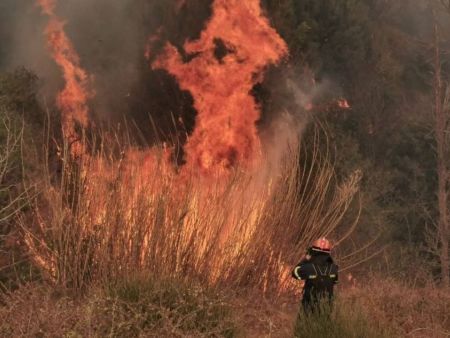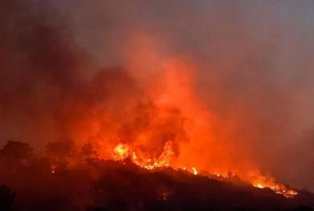 Για την κατάσβεση της φωτιάς κινητοποιήθηκαν επίγειες και εναέριες δυνάμεις της Πυροσβεστικής.