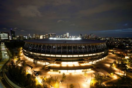 Είναι οβάλ, τεράστιο και σε θέση να φιλοξενήσει 68.000 άτομα. Κι όμως, το Εθνικό Στάδιο του Τόκιο που σχεδίασε ο Κένγκο Κούμα δεν έχει αποκόψει την επαφή του με το περιβάλλον.
