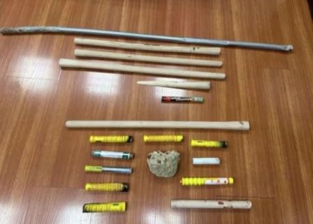 Βαρύς ο οπλισμός των Κροατών χούλιγκανς που κατασχέθηκε από τους αστυνομικούς μετά τις συλλήψεις στα επεισόδια της Ν. Φιλαδέλφειας και τη δολοφονία του Μιχάλη Κατσουρή. Σιδερένιες βέργες, ξύλινες ράβδοι με καρφιά και μαχαίρια χρησιμοποιήθηκαν κατά την επιδρομή.