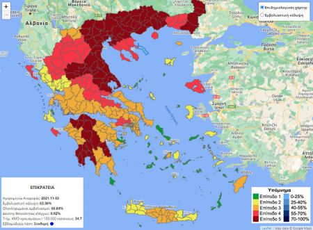 Αυτή την εβδομάδα υπάρχουν και αρκετές περιοχές της χώρας που κατέγραψαν ύφεση του επιδημιολογικού φορτίου και ως εκ τούτου, το επίπεδο επικινδυνότητας μειώθηκε.