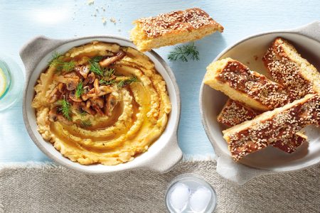 Ο σεφ του εστιατορίου ΚΙΝΩΝΩ στο Κουκάκι, Γιάννης Βουλγαράκης, μας προτείνει μια διαφορετική εκδοχή της φάβας, που μαγειρεύεται στο φούρνο και συνοδεύεται από σοταρισμένα μανιτάρια.