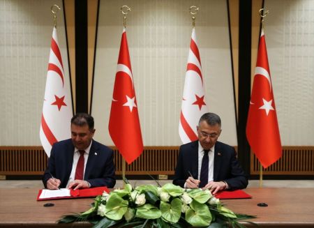 Μεγάλη συμφωνία υπέγραψαν ο αντιπρόεδρος της Τουρκίας και ο «πρωθυπουργός» των κατεχομένων, για την ενίσχυση των υποδομών και το κόψιμο του ομφάλιου λώρου που συνδέει την οικονομία της ΤΔΒΚ με την Κυπριακή Δημοκρατία.