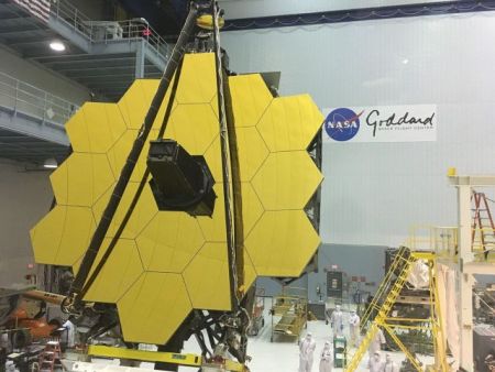 Έπειτα από τη συναρμολόγηση του γιγάντιου, χρυσαφένιου καθρέπτη του, το διαστημικό τηλεσκόπιο James Webb, ένα παρατηρητήριο που θα επιτρέψει στους αστρονόμους να δουν το φως των πρώτων άστρων στο Σύμπαν, ετοιμάζεται για δοκιμές σε θάλαμο κενού.