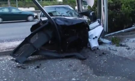 Πρόστιμο και αφαίρεση της άδειας του οδηγού - Δείτε το βίντεο με το όχημα να πέφτει πάνω στην τζαμαρία των ΕΛ.ΤΑ στην Κηφισίας