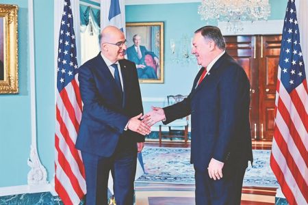 Ο έλληνας υπουργός Εξωτερικών ευχαρίστησε τον Μάικ Πομπέο για την εξαιρετικά σημαντική συνεισφορά του στην προώθηση των σχέσεων Ελλάδας και ΗΠΑ.